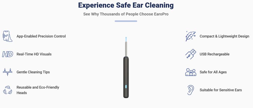 This makes EaroPro a safe, hygienic, and precise ear-cleaning option that’s far superior to outdated methods.